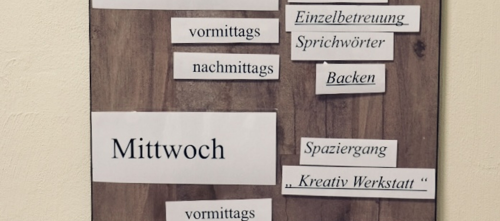 • Vielfältige Einzel- und Gruppenangebote wie Gymnastik, Spiele, Basteln, Singen, Backen und Kochen, Biographiearbeit, basale Stimulation und Spaziergänge