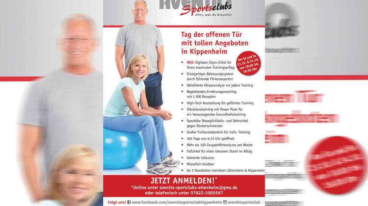 JETZT ANMELDEN! *Online unter aventio-sportclubs-ettenheim@gmx.de oder telefonisch unter 07822-3005567